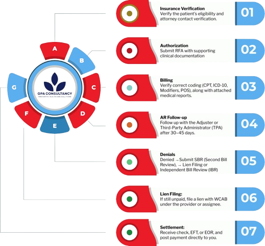 Tired of billing delays, denials, and past lien statutes? We handle worker’s compensation billing and collections, negotiations, Litigation, and settlements for you; every step, every claim, every code.